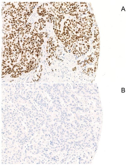 - Hammond, M.E.; Hayes, D.F.; Dowsett, M.; Allred, D.C.; Hagerty, K.L.; Badve, S.; Fitzgibbons, P.L.; Francis, G.; Goldstein, N.S.; Hayes, M.; et al. American Society of Clinical Oncology/College Of American Pathologists guideline recommendations for immunohistochemical testing of estrogen and progesterone receptors in breast cancer. J. Clin. Oncol. Off. J. Am. Soc. Clin. Oncol. 2010, 28, 2784–2795. [Google Scholar] [CrossRef] [PubMed]