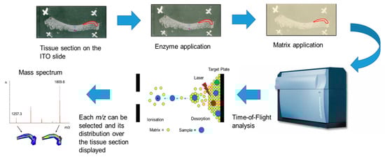 - Groseclose, M.R.; Andersson, M.; Hardesty, W.M.; Caprioli, R.M. Identification of proteins directly from tissue: In situ tryptic digestions coupled with imaging mass spectrometry. J. Mass Spectrom. 2007, 42, 254–262. [Google Scholar] [CrossRef]