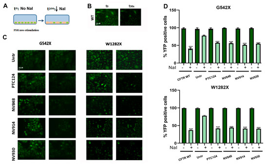 For this purpose, molecular and functional analyses have been conducted by halide-sensitive YFP assay to evaluate the functionality of the CFTR channel produced in FRT cells after treatment with NV848, NV914, and NV930.