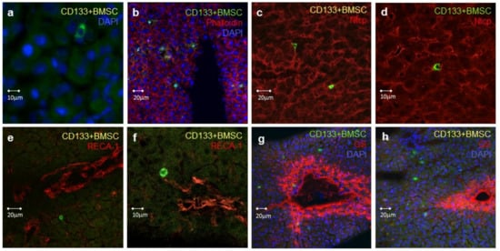 2.5. Localization of Human CD133+BMSC Homing during Hepatic Warm Ischemia Reperfusion Injury