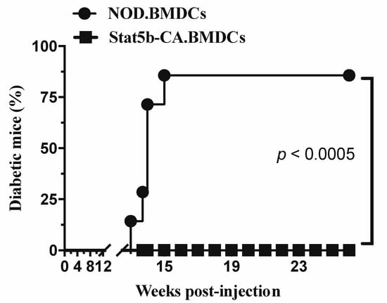 - Zerif, E.; Maalem, A.; Gaudreau, S.; Guindi, C.; Ramzan, M.; Veroneau, S.; Gris, D.; Stankova, J.; Rola-Pleszczynski, M.; Mourad, W.; et al. Constitutively active Stat5b signaling confers tolerogenic functions to dendritic cells of NOD mice and halts diabetes progression. J. Autoimmun. 2017, 76, 63–74. [Google Scholar] [CrossRef]