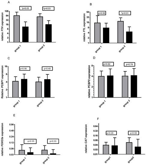 All genes investigated in this study are involved in iron homeostasis and are easily induced by stressors. FTH and FTL encode “acute phase” proteins. It is well known that these genes represent the level of the labile iron pool (LIP), and their upregulation or downregulation is associated with free iron levels [5,6].