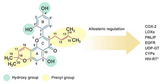 - Chen, X.; Mukwaya, E.; Wong, M.S.; Zhang, Y. A systematic review on biological activities of prenylated flavonoids. Pharm. Biol. 2014, 52, 655–660. [Google Scholar] [CrossRef]