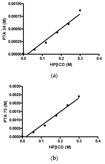 PTA34 and PTA73 Water Solubility Values in Presence of HP-β-CD.