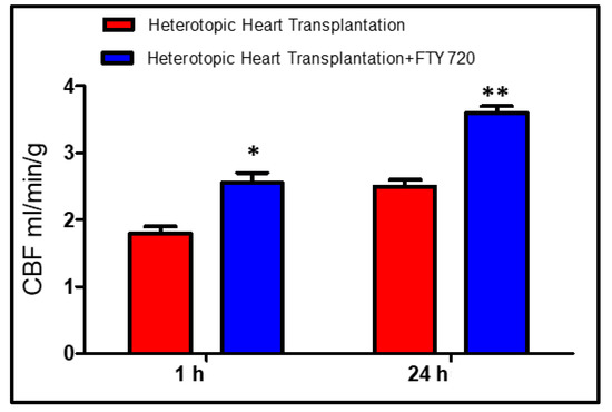 Ahmed, N.; Farooq, J.; Sadiq, S.; Meo, S.A.; Jan, A.; Cheema, F.H.; Faggian, G.; Rungatscher, A. Fingolimod (FTY720) Preserves High Energy Phosphates and Improves Cardiac Function in Heterotopic Heart Transplantation Model. Int. J. Mol. Sci. 2020, 21, 6548. https://doi.org/10.3390/ijms21186548
