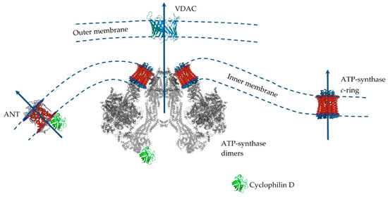 - Baines, C.P.; Gutiérrez-Aguilar, M. The mitochondrial permeability transition pore: Is it formed by the ATP synthase, adenine nucleotide translocators or both? Biochim. Biophys. Acta Bioenerg. 2020, 1861, 148249. [Google Scholar] [CrossRef] [PubMed]