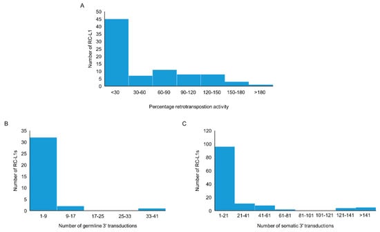 - Mathias, S.L.; Scott, A.F.; Kazazian, H.H., Jr.; Boeke, J.D.; Gabriel, A. Reverse transcriptase encoded by a human transposable element. Science 1991, 254, 1808–1810. [Google Scholar] [CrossRef]