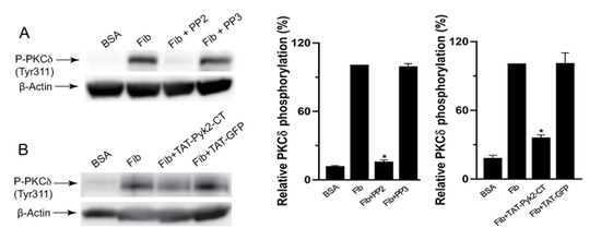 2.2. αIIbβ3-Mediated PKCδ Phosphorylation is Regulated by Src and Pyk2