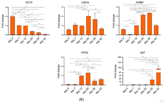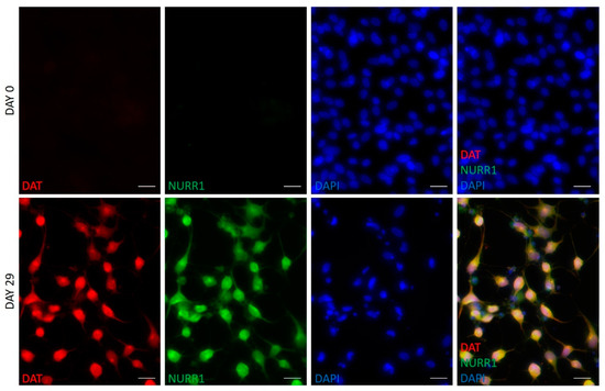 - Kim, T.; Song, J.-J.; Puspita, L.; Valiulahi, P.; Shim, J.; Lee, S.-H. In vitro generation of mature midbrain-type dopamine neurons by adjusting exogenous Nurr1 and Foxa2 expressions to their physiologic patterns. Exp. Mol. Med. 2017, 49, e300. [Google Scholar] [CrossRef]