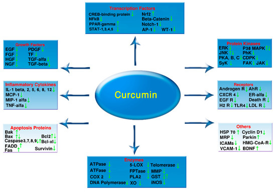 - Zhou, H.; Beevers, C.S.; Huang, S. The targets of curcumin. Curr. Drug Targets 2011, 12, 332–347. [Google Scholar] [CrossRef]