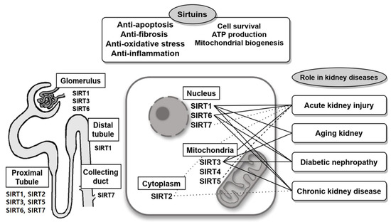 Interest in the role of sirtuins in the pathophysiology of various renal diseases has grown recently. Given the tubular expression of sirtuins and their modulating effects on oxidative stress, inflammation, and mitochondrial dysfunction, they are likely to be involved in the pathogenesis of acute kidney injury (AKI) [80].