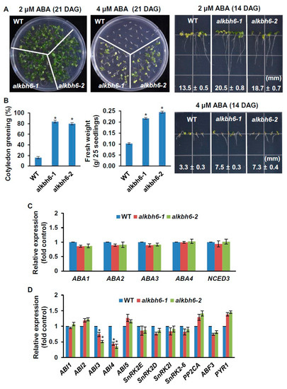 2.3. ALKBH6 Influences the Response of Arabidopsis to ABA