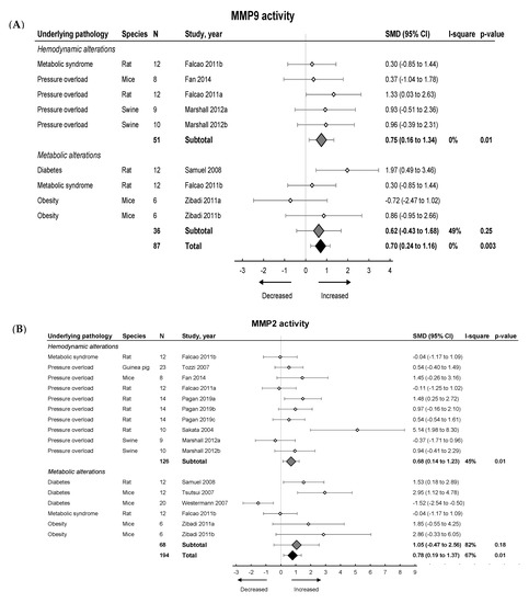 2.3.2. Meta-Analysis on MMPs and TIMPs in Models Involving Hemodynamic and Metabolic Alterations
