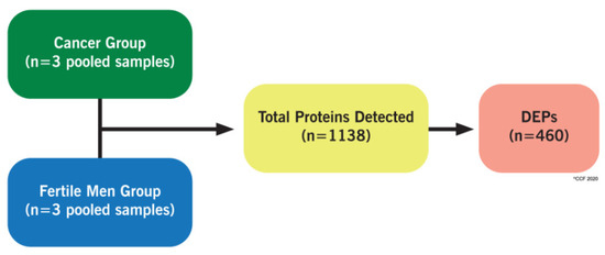 Proteome profile of sperm in cancer group and fertile men. DEPs: differentially expressed proteins.