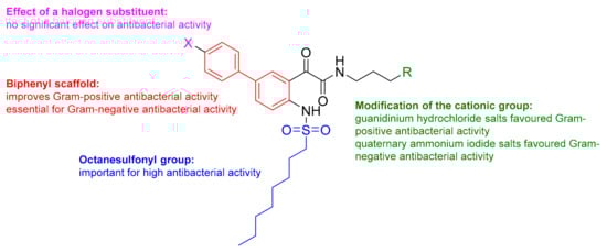 Summary of structure–activity relationships (SARs) for antibacterial activity.