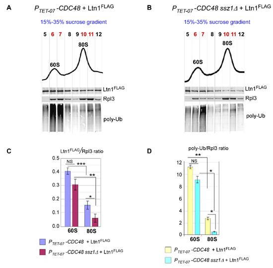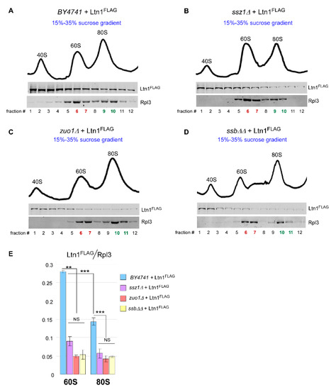 2.5. Loss of Ssb/RAC Triad Integrity Decreases Ltn1 Association with Both 60S and 80S in Wild-Type Cells
