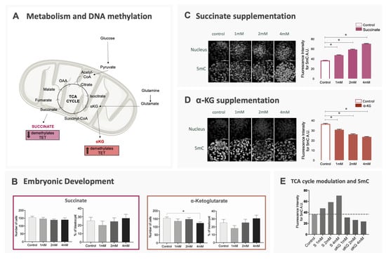 - Zhang, Z.; He, C.; Zhang, L.; Zhu, T.; Lv, D.; Li, G.; Song, Y.; Wang, J.; Wu, H.; Ji, P.; et al. Alpha-ketoglutarate affects murine embryo development through metabolic and epigenetic modulations. Reproduction 2019, 58, 125–135. [Google Scholar] [CrossRef]