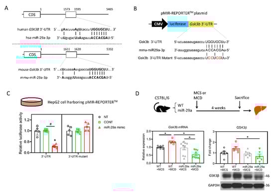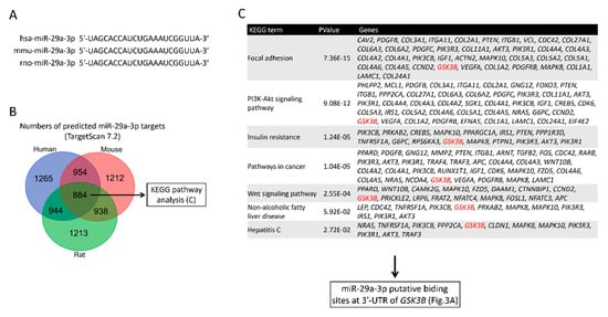 2.2. Target Identification of GSK3β as miR-29a Target in Hepatocyte