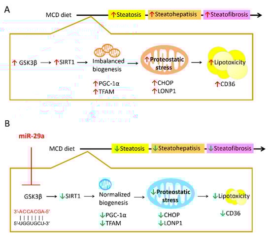 Chicago/Turabian StyleYang, Ya-Ling, Pei-Wen Wang, Feng-Sheng Wang, Hung-Yu Lin, and Ying-Hsien Huang. 2020. "miR-29a Modulates GSK3β/SIRT1-Linked Mitochondrial Proteostatic Stress to Ameliorate Mouse Non-Alcoholic Steatohepatitis" International Journal of Molecular Sciences 21, no. 18: 6884. https://doi.org/10.3390/ijms21186884