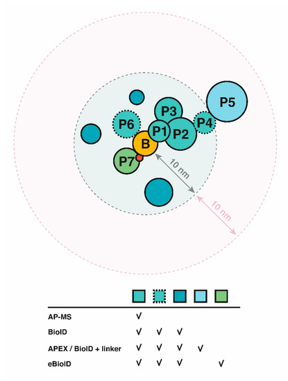 - Roux, K.J. Marked by association: Techniques for proximity-dependent labeling of proteins in eukaryotic cells. Cell. Mol. Life Sci. 2013, 70, 3657–3664. [Google Scholar] [CrossRef]