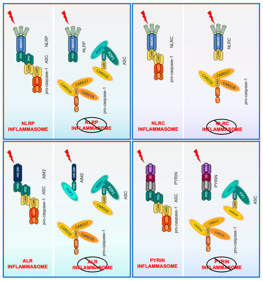 AIM2 like receptor; ALR; ASC; caspase-1; CARD; caspase recruitment domain; COP; POP; PYD; PYRIN domain; inflammasome; interleukin-1; NLR; Nod-like receptor 1. Introduction