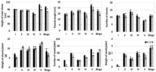 | Source of Variation | Degrees of Freedom | Height of Main Shoot | Panicle Length | Number of Shoots | Weight of Shoots/Plant | Number of Seeds/Plant | Weight of Seeds/Plant |