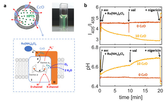 - Li, M.; Khan, S.; Rong, H.; Tuma, R.; Hatzakis, N.S.; Jeuken, L.J.C. Effects of membrane curvature and pH on proton pumping activity of single cytochrome bo3 enzymes. Biochim. Biophys. Acta Bioenerg. 2017, 1858, 763–770. [Google Scholar] [CrossRef]