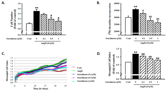 2.1. Effect of Sauchinone on Mesangial Cell Proliferation