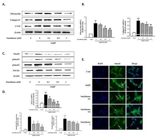 2.2. Effect of Sauchinone on Mesangial Cell Fibrosis