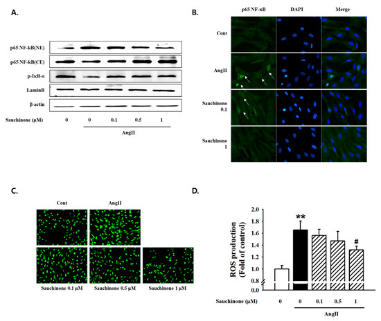 2.4. Effect of Sauchinone on Inflammatory Responses by NF-κB/ROS Pathway