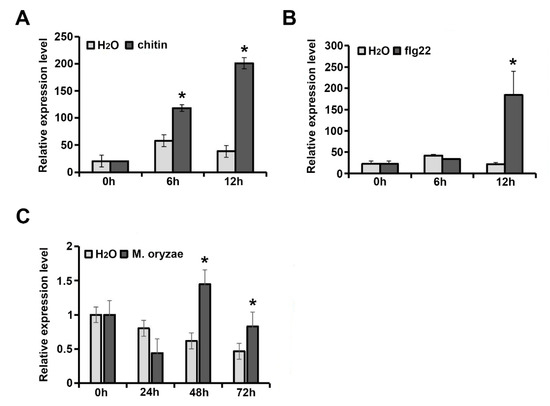 2.2. Transcription of OsExo70B1 Is Induced by PAMPs and M. oryza