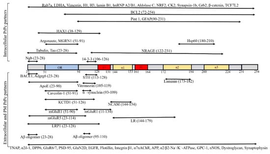 Numerous candidates have been listed as potential binding partners for PrPc in the inner leaflet of PM, intermembrane proteins, or extracellular proteins (Table 2).