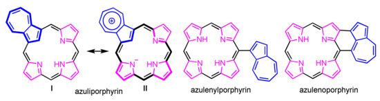 - Lash, T.D. Out of the Blue! Azuliporphyrins and Related Carbaporphyrinoid Systems. ACC Chem. Res. 2016, 49, 471–482. [Google Scholar] [CrossRef] [PubMed]