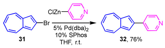 Synthesis of 2-(4-pyridyl)azulene (32) using a heteroaryl zinc reagent.