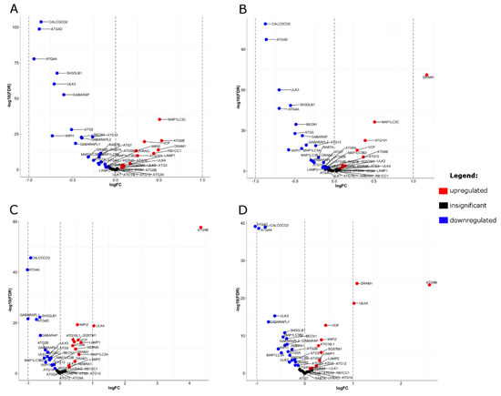 2.6. Differential Expression (DE) of Autophagy Genes