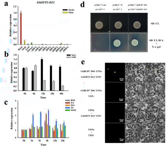 2.5. GhBLH7-D06 Interacts with GhOFP3-D13 in Response to V. dahliae Infection