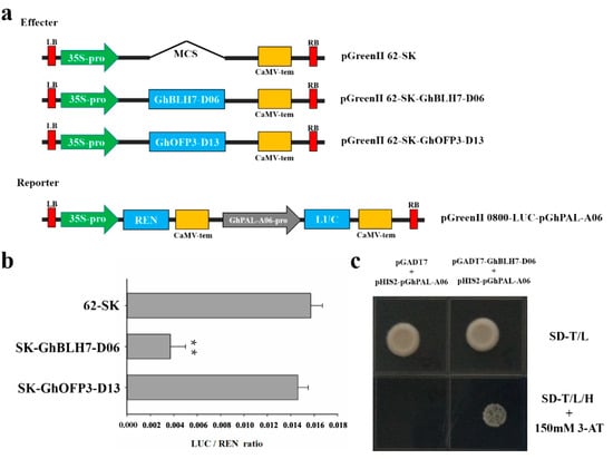 2.6. GhBLH7-D06 Could Inhibit the Expression of GhPAL-A06