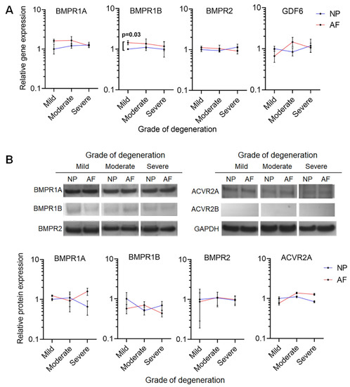 2.1. GDF6 Receptor Expression in NP and AF Cells