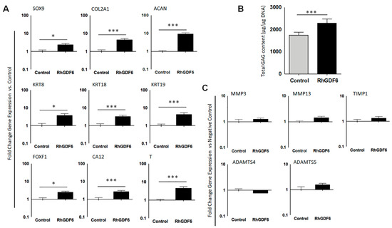 2.2. GDF6 Stimulation Upregulates the Expression of Healthy NP Marker Genes in NP Cells in Culture