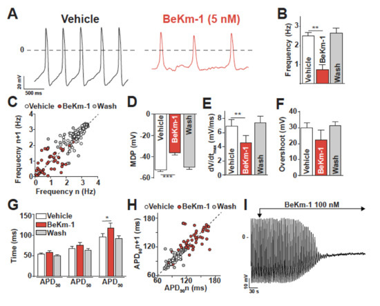 2.2. BeKm-1 Produces Characteristic Modifications of the Action Potential (AP) in hiPS-CMs