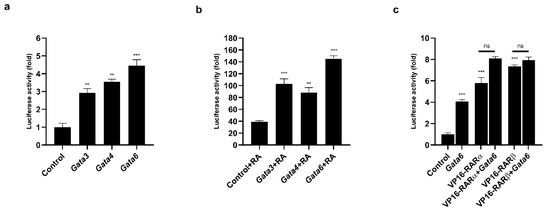 2.4. GATA Transcription Factors and Retinoic Acid Exerted a Synergistic Effect on the Activity of the Prdm3 Promoter