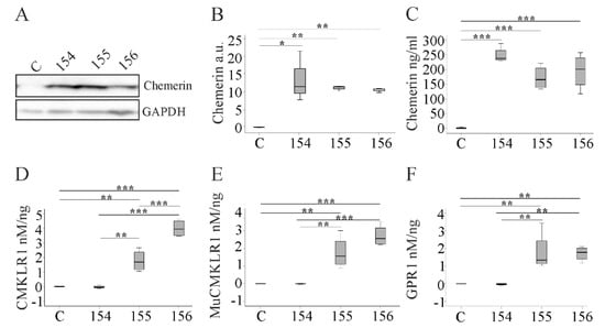 - Buechler, C.; Feder, S.; Haberl, E.M.; Aslanidis, C. Chemerin Isoforms and Activity in Obesity. Int. J. Mol. Sci. 2019, 20, 1128. [Google Scholar] [CrossRef] [PubMed]