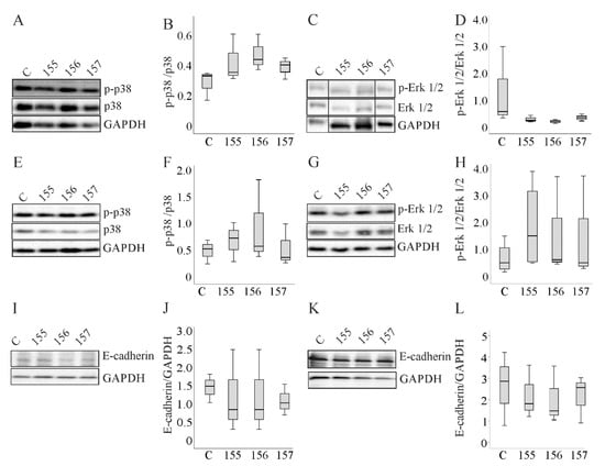 2.6. Activation of Extracellular Signal-Regulated Kinase (ERK)1/2 and p38 Mitogen-Activated Protein Kinase (MAPK,) and Protein Levels of E-Cadherin in Hepatocytes Overexpressing Chemerin Isoforms