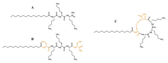 Neubauer, D.; Jaśkiewicz, M.; Sikorska, E.; Bartoszewska, S.; Bauer, M.; Kapusta, M.; Narajczyk, M.; Kamysz, W. Effect of Disulfide Cyclization of Ultrashort Cationic Lipopeptides on Antimicrobial Activity and Cytotoxicity. Int. J. Mol. Sci. 2020, 21, 7208. https://doi.org/10.3390/ijms21197208