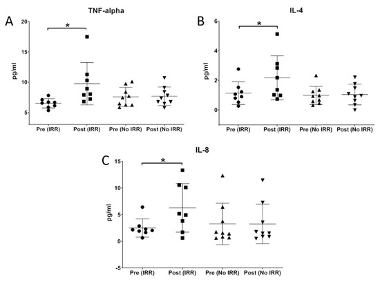 4.4. Cytokine Analysis