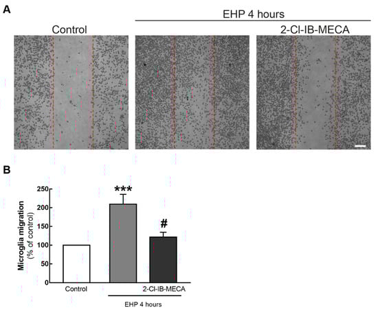 2.3. The Agonist of A3R Prevents EHP-Induced BV-2 Cell Migration