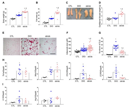 2.1. Macrophage Infiltration and Inflammation in the Adipose Tissue of DIO and ob/ob Mice
