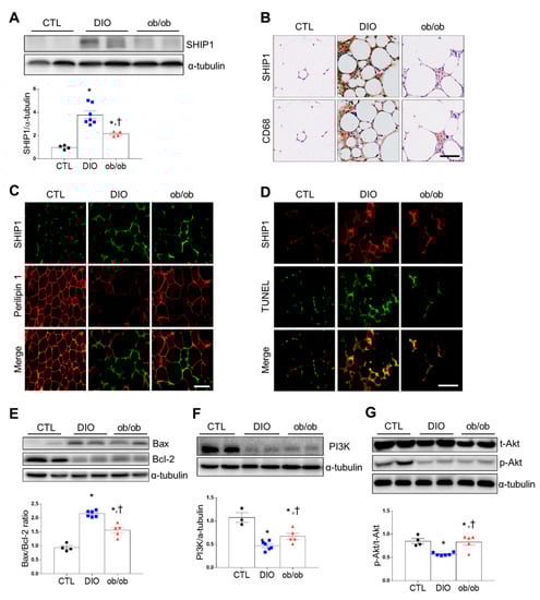 Jeong, J.H.; Choi, E.B.; Jang, H.M.; Ahn, Y.J.; An, H.S.; Lee, J.Y.; Park, G.; Jeong, E.A.; Shin, H.J.; Lee, J.; et al. The Role of SHIP1 on Apoptosis and Autophagy in the Adipose Tissue of Obese Mice. Int. J. Mol. Sci. 2020, 21, 7225. https://doi.org/10.3390/ijms21197225