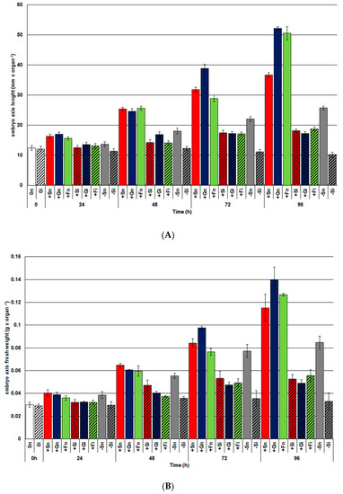 Biometric measurements of the length and fresh weight of embryo axes were performed for at least 10–20 axes and expressed in mm per organ and g per organ, respectively.