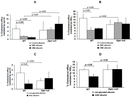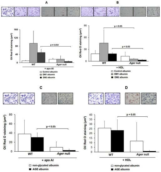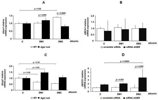 - Daffu, G.; Shen, X.; Senatus, L.; Thiagarajan, D.; Abedini, A.; Hurtado Del Pozo, C.; Rosario, R.; Song, F.; Friedman, R.A.; Ramasamy, R.; et al. RAGE Suppresses ABCG1-Mediated Macrophage Cholesterol Efflux in Diabetes. Diabetes 2015, 64, 4046–4060. [Google Scholar] [CrossRef] [PubMed]